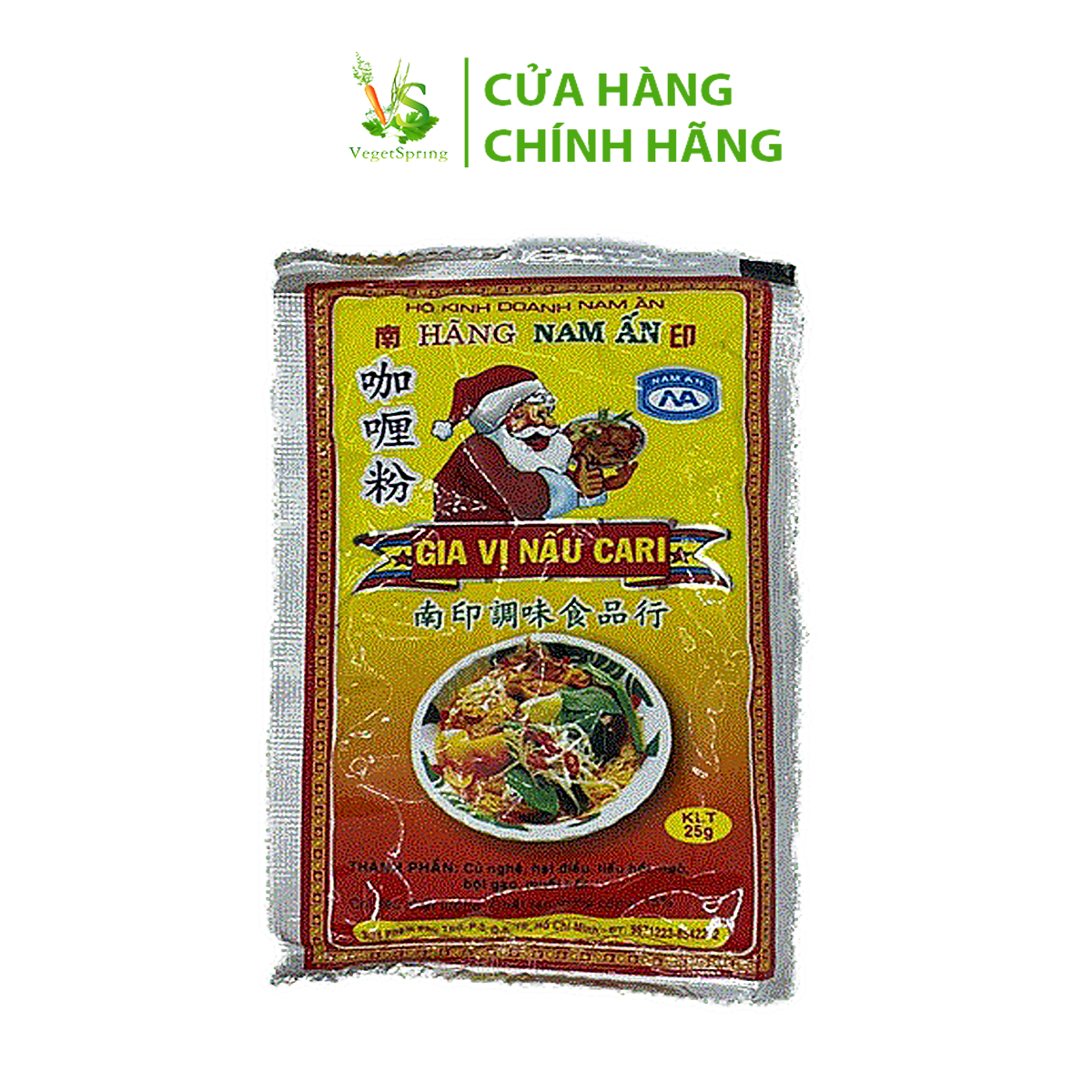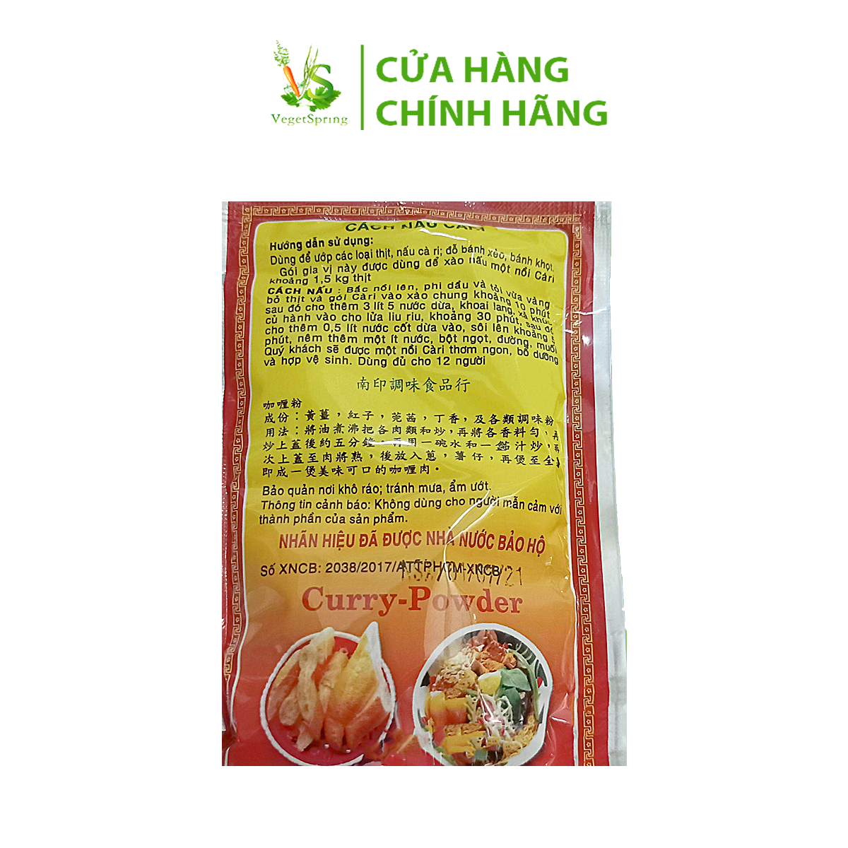 Thành phần và công dụng:Sản phẩm có thành phần từ bột cà ri (30%), sả cây, lá cari, đinh hương, tai vị, quế, đường cát, muối ăn, dầu thực vật…