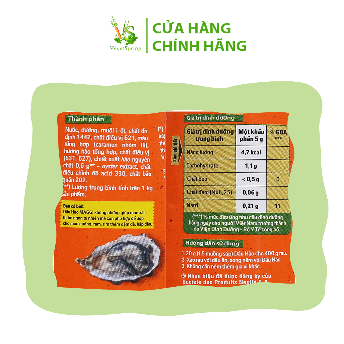 Dầu hào từ thương hiệu Maggi vừa tạo màu, vừa tạo mùi, là bí quyết để có được món ăn vừa ngon, đậm đà và đẹp mắt. Dầu hào Maggi chai 150ml được cô đặc từ hào nguyên chất kết hợp hoàn hảo cùng các loại gia vị khác, tạo nên một tổng thể giúp món ăn vừa thơm gon, đậm đà vừa đẹp mắt.