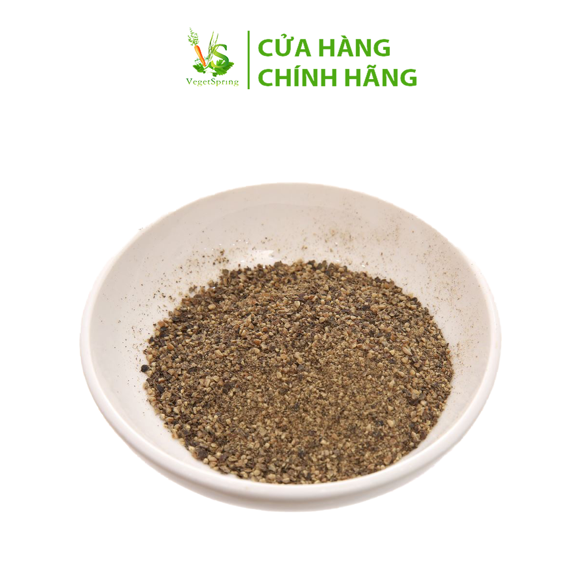 Hạt tiêu đen được đưa vào cối để xay thành bột. Đây là sản phẩm tiêu xay nguyên chất không pha trộn với bất cứ thành phần nào hoặc phụ gia.