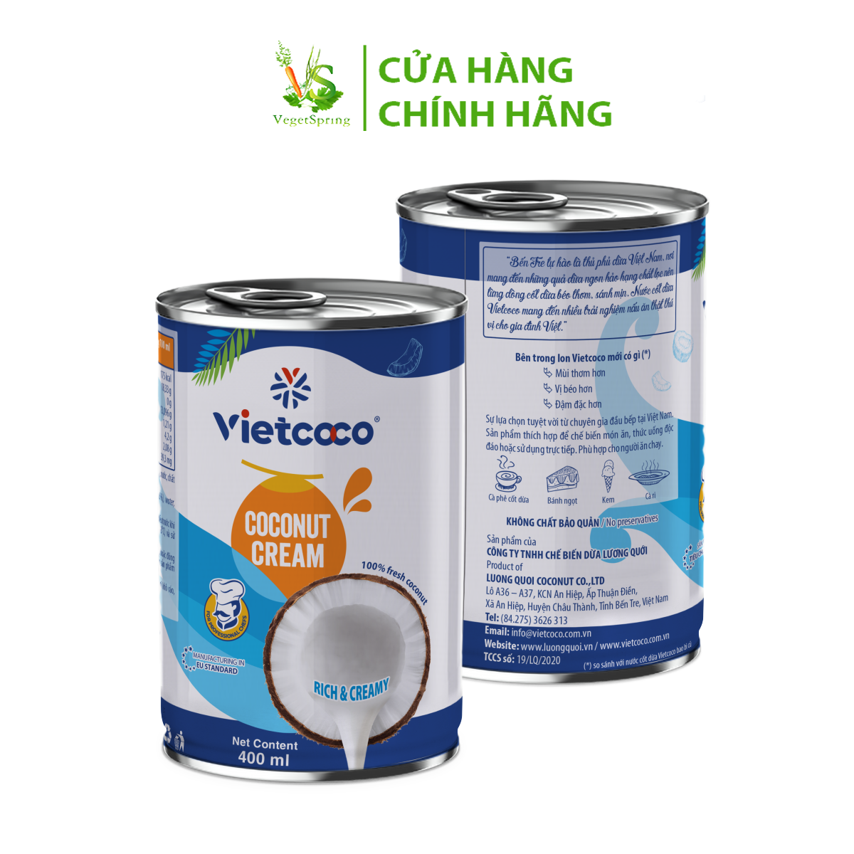 Ngày xưa để có nước cốt dừa bạn phải trải qua nhiều công đoạn từ hái dừa, chặt dừa, nạo lấy phần cơm dừa tươi rồi vắt lấy nước cốt, thật kì công và qua nhiều công đoạn. Ngày nay, Vietcoco đã giúp bạn giải quyết những khó khăn đó nhờ vào sản phẩm nước cốt dừa tươi đóng lon thiếc tiện lợi. Sản phẩm chứa tới 85% nước cốt dừa tươi, phù hợp với nhiều món ăn cần tạo độ béo, thơm của dừa như cà ri, xào lăn, nấu chè, làm bánh… Sản phẩm hoàn toàn phù hợp với người ăn chay và ăn kiêng.